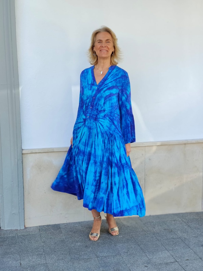 Medidas M: hombro 47cm contorno pecho 118cm largo 119cm.